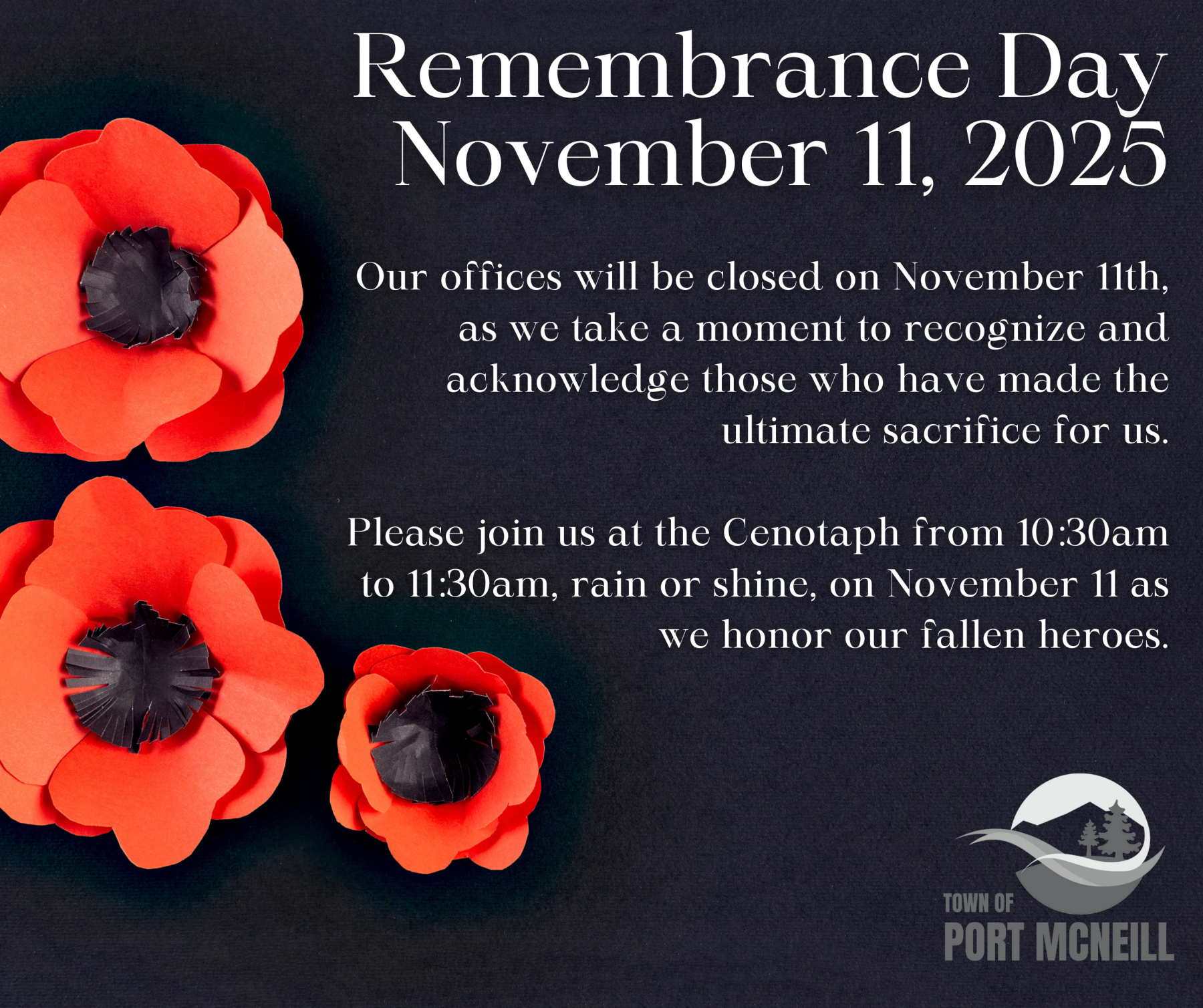 Please join us at the Port McNeill Cenotaph as we take some time to remember those that gave their lives for ours.